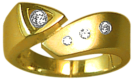 18k yellow gold, 4.70 grams. Polished/sand-blast finish. Round, white cz's., gypsy set. Measures 6 mm. / 1/4" wide.