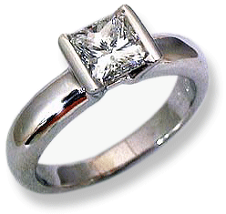 14k white gold, princess cut diamond .80 cts. SI2, D, 5.03 X 4.91 X 3.83 good cut. Shank measures 4.0 mm. / 3/16". Search Loose diamond price list.