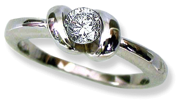 Centre: Round brilliant cut diamond .43 cts. I1, G, 4.60 X 4.64 X 3.10 standard cut. Measures 2.0 mm./1/16" wide.