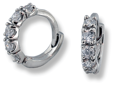 18k white gold, 2.0 grams. Round brilliant cut diamonds 10x.04=.40 cts. I1, G. Measures 11 mm / 1/2".