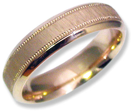 10k yellow gold, 4.9 grams. Polished, brushed, finish. Comfort fit. Measures 5 mm. / 3/16” wide. Size 7.