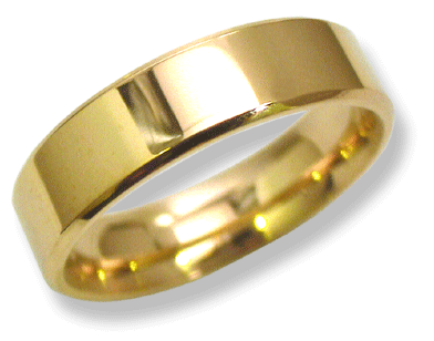 10k yellow gold, 4.8 grams. Polished finish, beveled edges with comfort fit. Measures 5 mm. / 3/16” wide. Size 7.