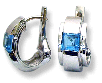 10k white gold, 5.1 grams. Polished finish. Square cut, light blue topaz, 5 x 5 mm. Measures 17 x 8 mm. / 5/8 x 5/16”.