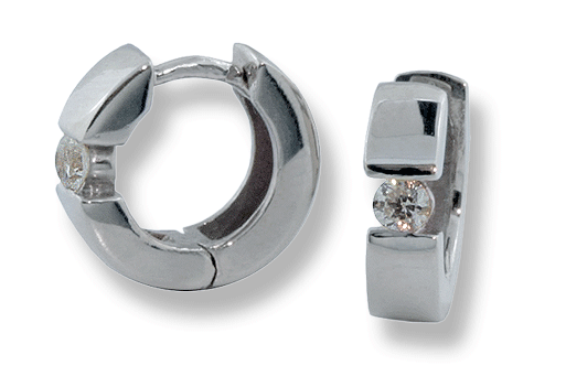 18k white gold, 3.6 grams. Polished finish. Round cut cz’s, 6 mm. Measures 19 mm. / 3/4” high.