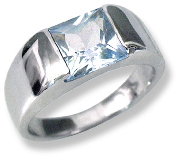 18k white gold, 7.1 grams. Polished finish. Square cut, blue topaz, 8 x 8 mm. Measures 8 mm. / 5/16” wide.