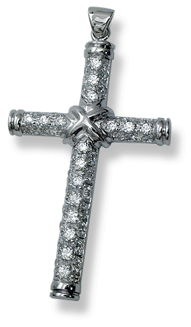 18k white gold, 8.8 grams. Polished finish. Round cut cz’s, pave’ set. Measures 31 x 55 mm. / 1 1/4 x 2 1/4”.