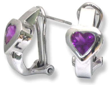 14k white gold, 4.0 grams. Polished finish. Heart shape amethyst, 6 x 6 mm. Measures 16 mm. / 5/8” high.