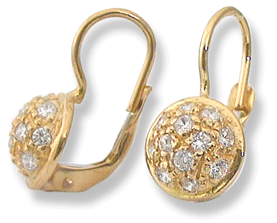 18k yellow gold, 2.9 grams. 24 x 1.75 mm. pave’ set cz’s. Measures 18 mm. / 3/4” high.