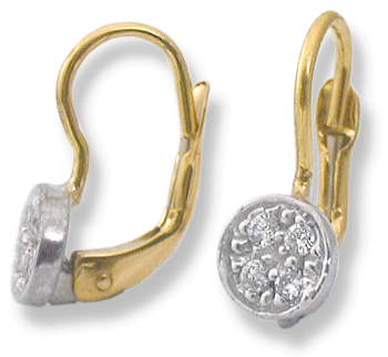 18k yellow/white gold, 2.0 grams. 8 x 1.75 mm. pave’ set cz’s. Measures 14 mm. / 9/16” high.