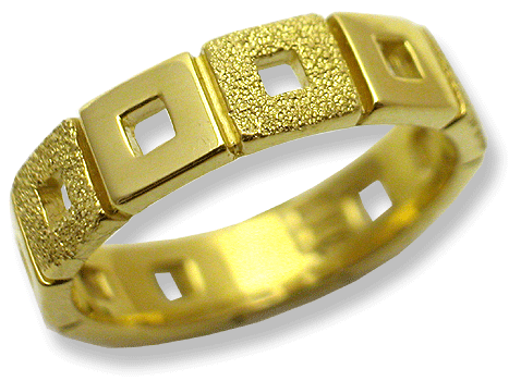 18k yellow gold, 5.2 grams. Polished/frosted finish. Measures 5.0 mm. / 3/16" wide.