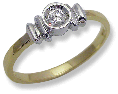 10k yellow/white gold, 1.6 grams. Round brilliant cut diamond, .08 cts. I1, G. Measures 2.0 mm. / 1/16" wide. Search Loose diamond price list.