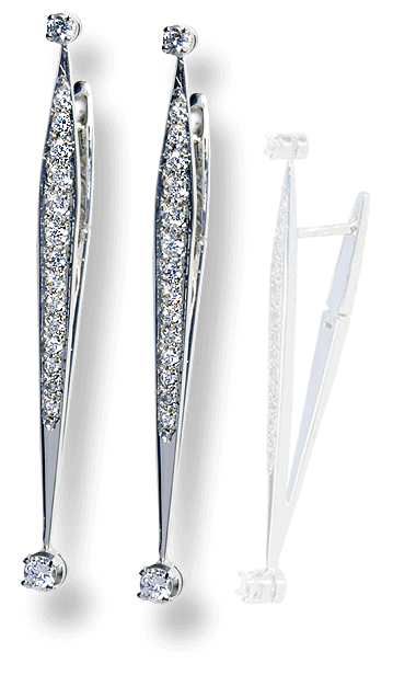 Brand New, Ultra Modern Design. Drop Style Ladies Earrings. 18k white gold, weighing 11.50 grams. High polished finish, inside and out with Pave' set round brilliant cut diamonds I1, G, 1.14 cts. Total diamond weight. Measuring 55 mm. or 2 1/4" high.