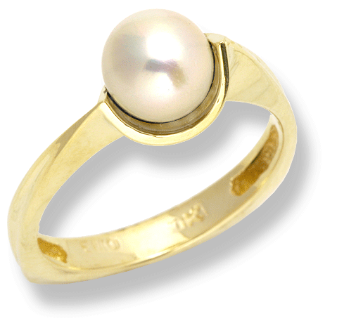 10k yellow gold, 3.4 grams. High polished finish. Pearl measures 7.0 mm. Triangular shaped shank measures 1.0 mm. tapering to 3.0 mm. / 1/16” tapering to 1/8” wide.