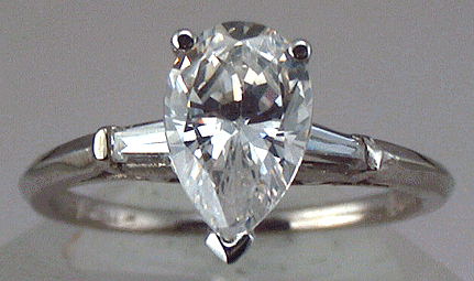 Center: Priced separately. May be set with pear shape diamond from .35 cts. to 1.50 cts. Shown with 1.00 cts. diamond. Search Loose diamond price list.