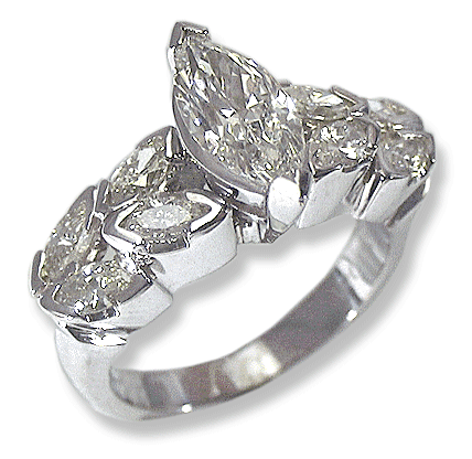 Center: Priced separately. May be set with any shape diamond from .50 cts. or larger. Shown with 1.25 cts. marquis cut diamond. Search Loose diamond price list.
