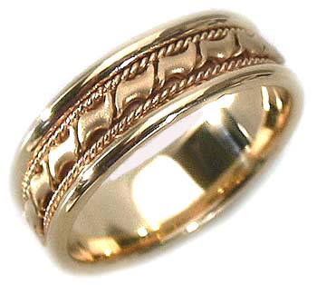 10k yellow/white gold, 3.60 grams. Measures 6x1.5 mm. / 3/4x1/16". Size 7.