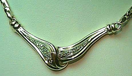 18k yellow/white gold, 8.00 grams. Round diamonds 17x.01 cts.= .17 cts. I-1, H, single cut. Measures 57 mm. / 2 1/4" wide.