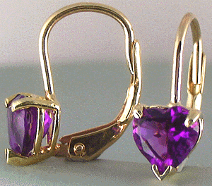14k y gold, 1.70 grams. Heart shape amethyst 6x6 mm. Measures 16 mm. / 5/8" high.