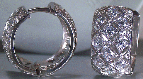 14k white gold, 8.40 grams. Combined 20x2.5 mm. round brilliant cut cz's. Measures 18x10 mm. / 3/4x7/16".