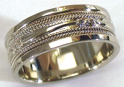 10k white gold, 4.50 grams. Measures 7x1.5 mm. / 7/16x1/16". Size 7.