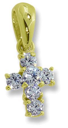 18k yellow/white gold, 1.50 grams. 5x2.25 mm. and 1x3 mm. round cz's. Measures 17x8 mm. / 3/4x3/8".