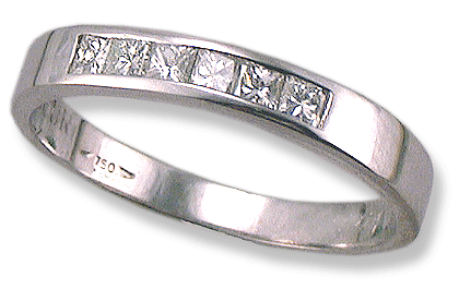 18k white gold, 2.3 grams. Princess diamonds, 5x.06=.30 cts. 2.5 mm. VS2, G.