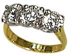 18k yellow, white gold, 5.54 grams. Round brilliant, cut diamonds, 1x1.00 cts. I1, H. 2x.85=1.70 cts. I1, H. Measures 6.5 mm. / 1/4" wide.